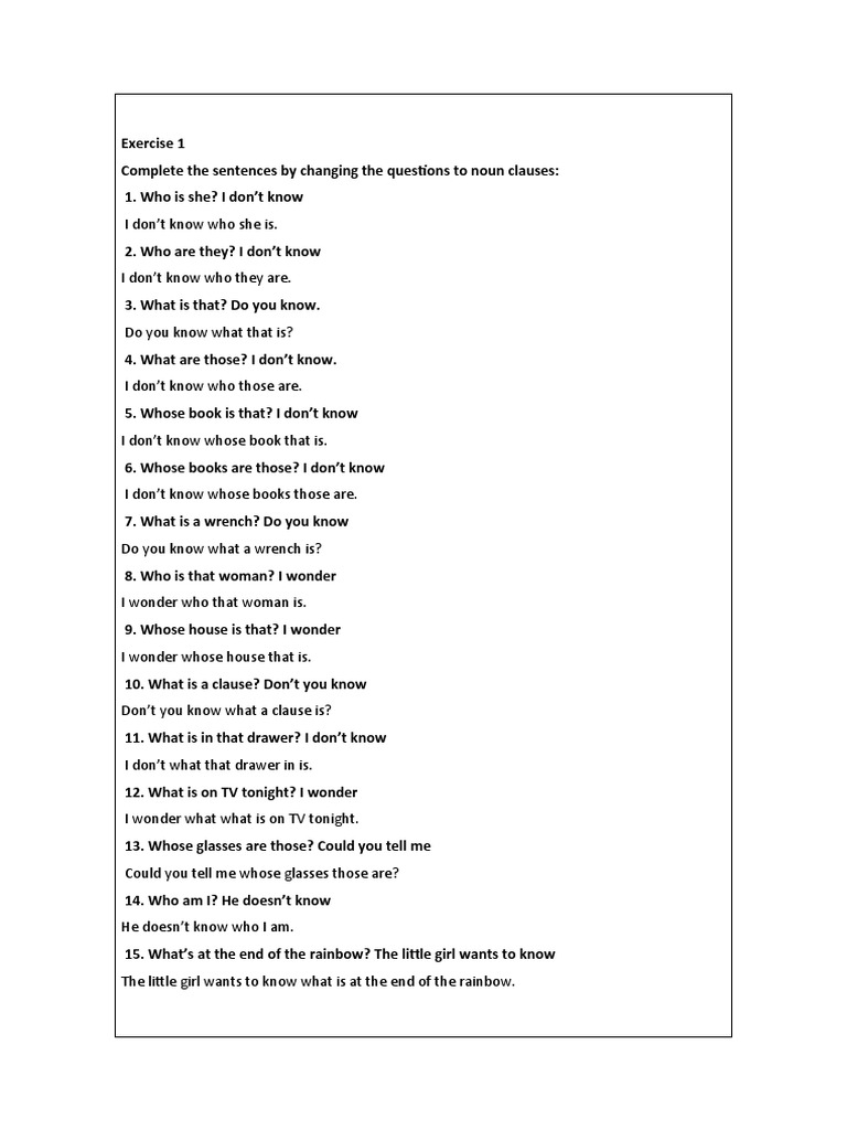 Quick exercise combine the following sentences using noun clauses.